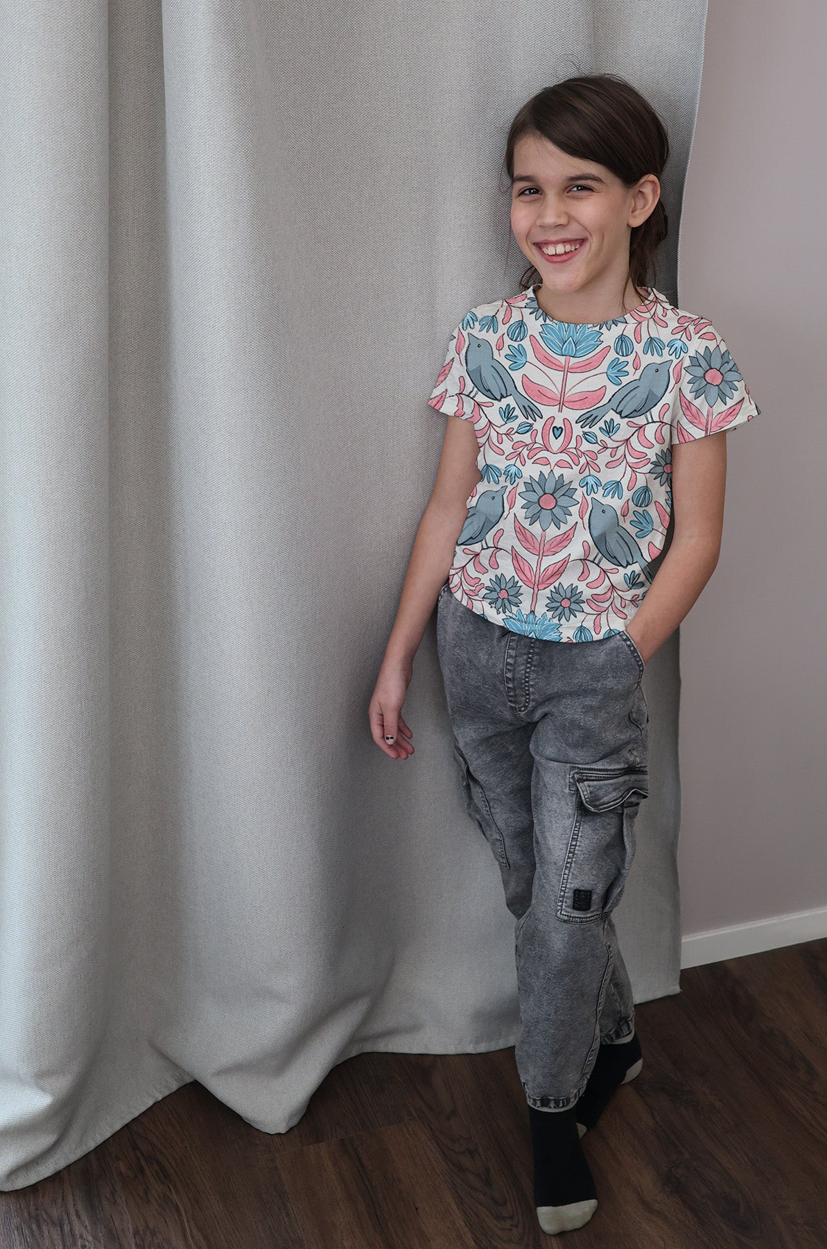High-quality single jersey, produced in Europe and printed on organic, GOTS-certified cotton. A soft, flexible and comfortable knit fabric that is well suited for garments such as t-shirts, dresses, leggings, childrenswear and other projects where you want a stretchy fabric with a pleasant feel against the skin.