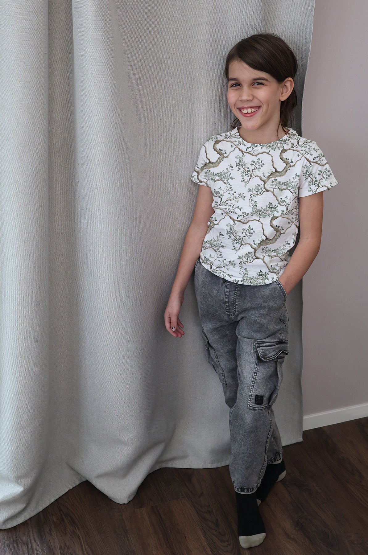 Vävd bomullspoplin av hög kvalitet, producerad i Europa och tryckt på ekologisk, GOTS-certifierad bomull. Ett stadigt men mjukt material som passar fint till exempelvis skjortor, blusar, klänningar, barnkläder och andra plagg där du vill ha ett vävt tyg med fin struktur.