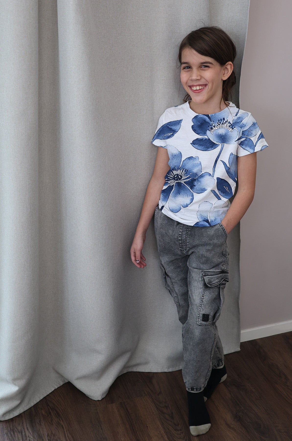 Vävd bomullspoplin av hög kvalitet, producerad i Europa och tryckt på ekologisk, GOTS-certifierad bomull. Ett stadigt men mjukt material som passar fint till exempelvis skjortor, blusar, klänningar, barnkläder och andra plagg där du vill ha ett vävt tyg med fin struktur.