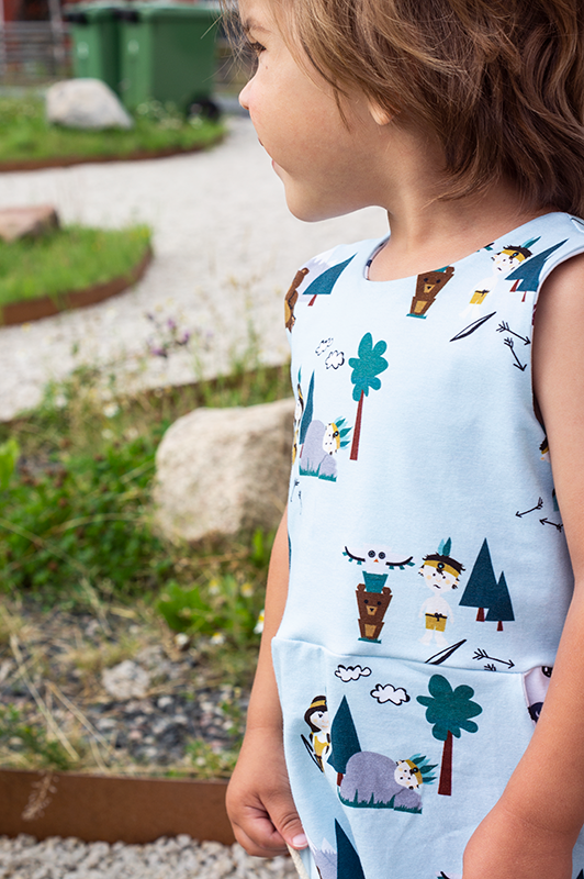 Det här tyget är en del av vår egen kollektion och bär en design du bara hittar hos oss. Tyget är producerat i Europa och tryckt med hög kvalitet på en GOTS-certifierad Single Jersey. Mjukt, följsamt material som passar utmärkt till allt från barnkläder till bekväma vardagsplagg.